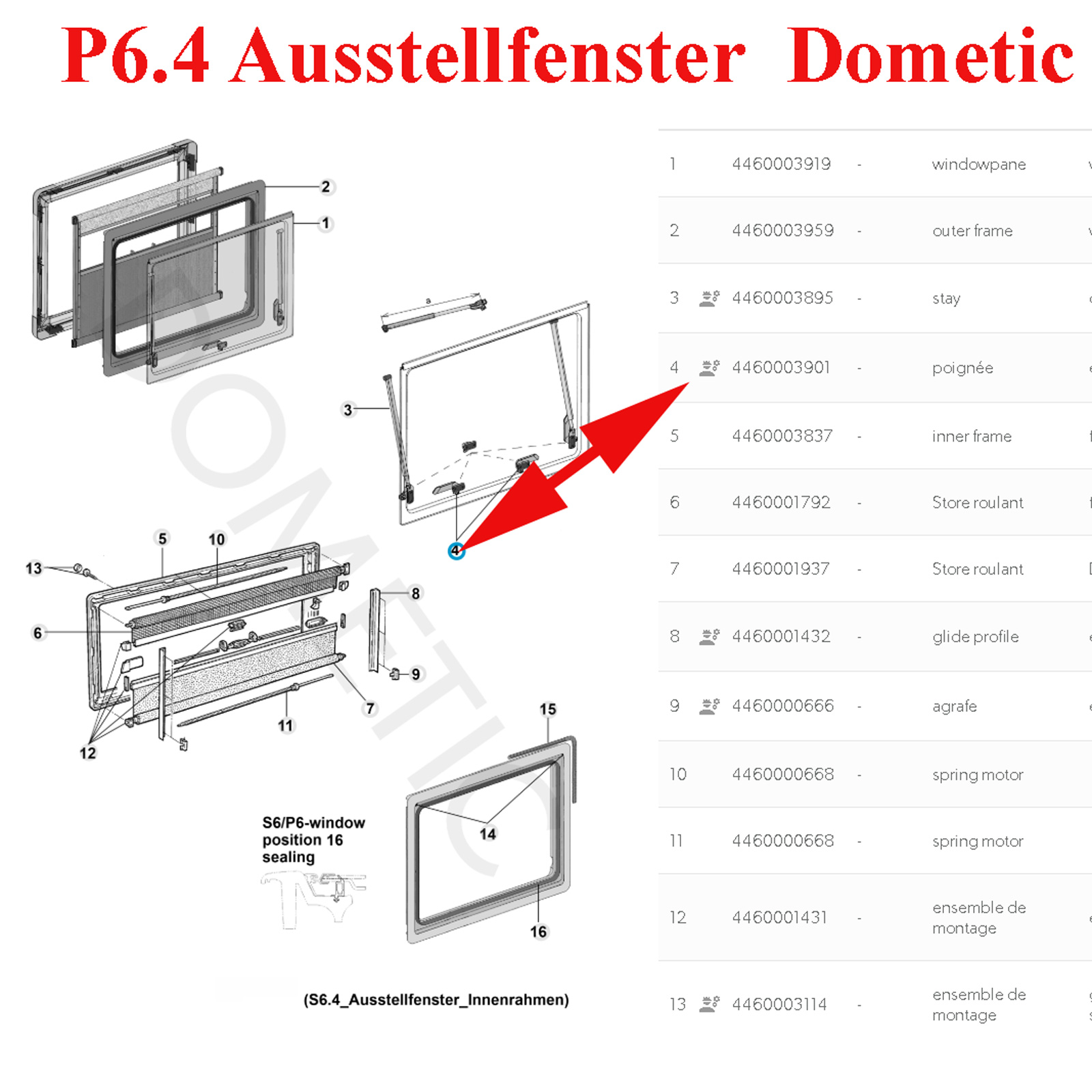 Seitz, 3 poignées des Baies ou des fenêtres K6, K6P, P6, P6.4, P6.5, S5, S6, S6.5 Dometic