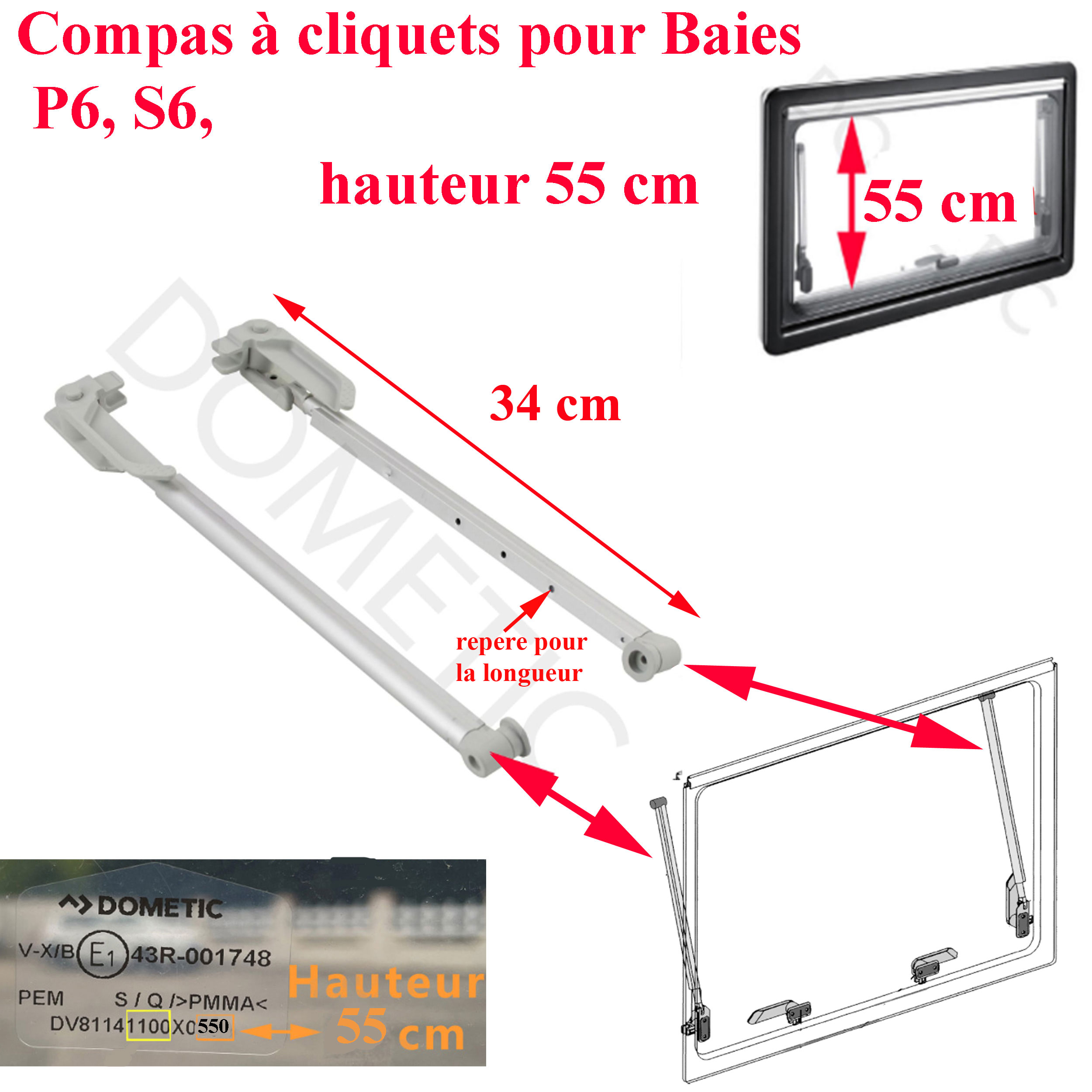 la dimension de 500 mm n’est pas la longueur des compas ou vérin mais celle de la hauteur de la baie (ou plus précisément du cadre d’encastrement de la baie).