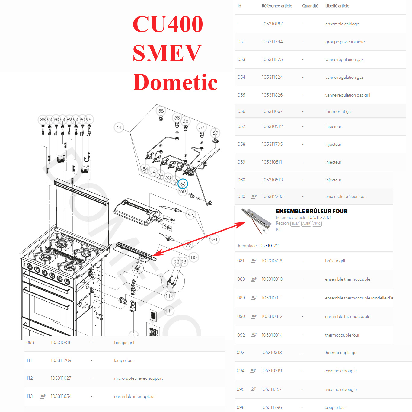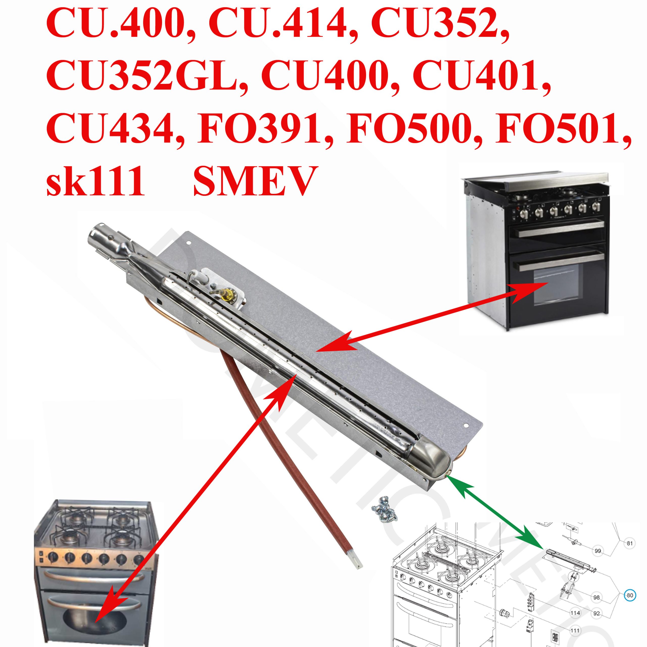 SMEV, brûleur four comportant thermocouple et piezo pour les cuisinières: CU.400, CU.414, CU352, CU352GL, CU400, CU401, CU434, FO391, FO500, FO501, sk111, SMEVCU401