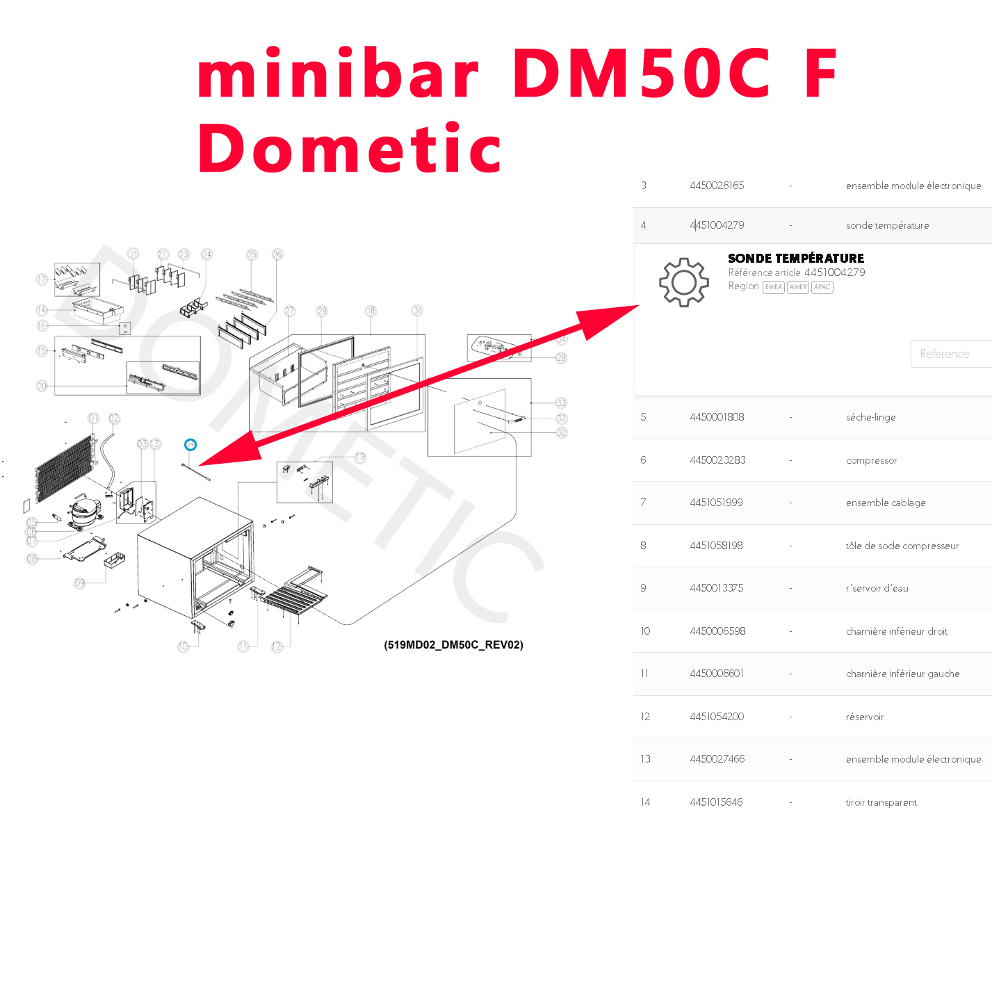 Pour vérifier si votre appareils comporte bien cette sonde, munissez vous pour vérifier la compatibilité de votre numéro de produit (PROD NO) de votre appareil Dometic (qui se trouve sur l’étiquette signalétique de votre glaciere ou minibar) ou merci de nous contacter au 01 84 20 86 07.
