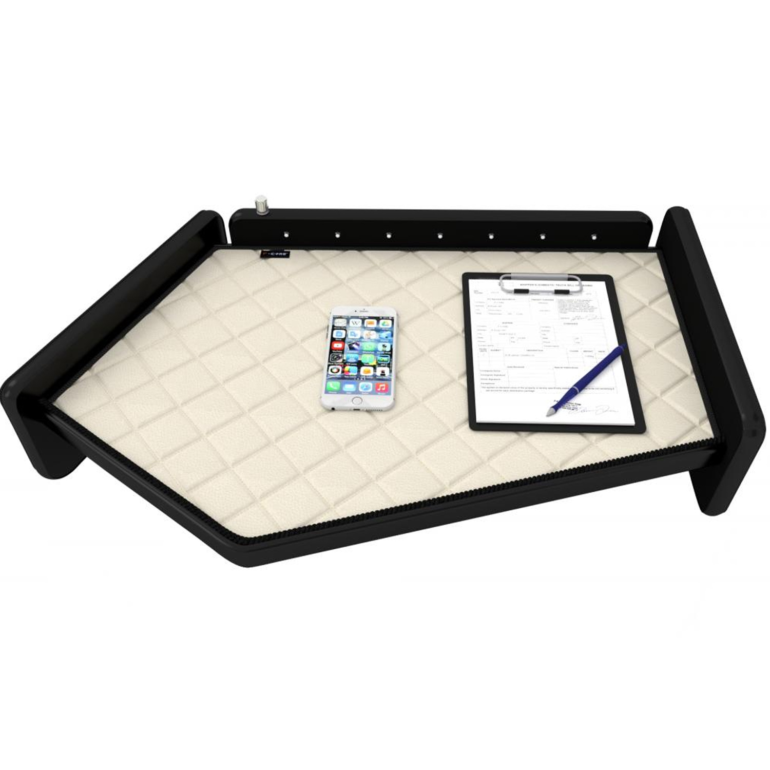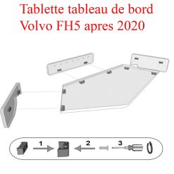 La tablette Volvo centrale pour le modèle FH5 se fixe facilement par scratch adhésif (inclus) à double face sur le tableau de bord, il n’est pas nécessaire d’effectuer des perçages pour son installation.