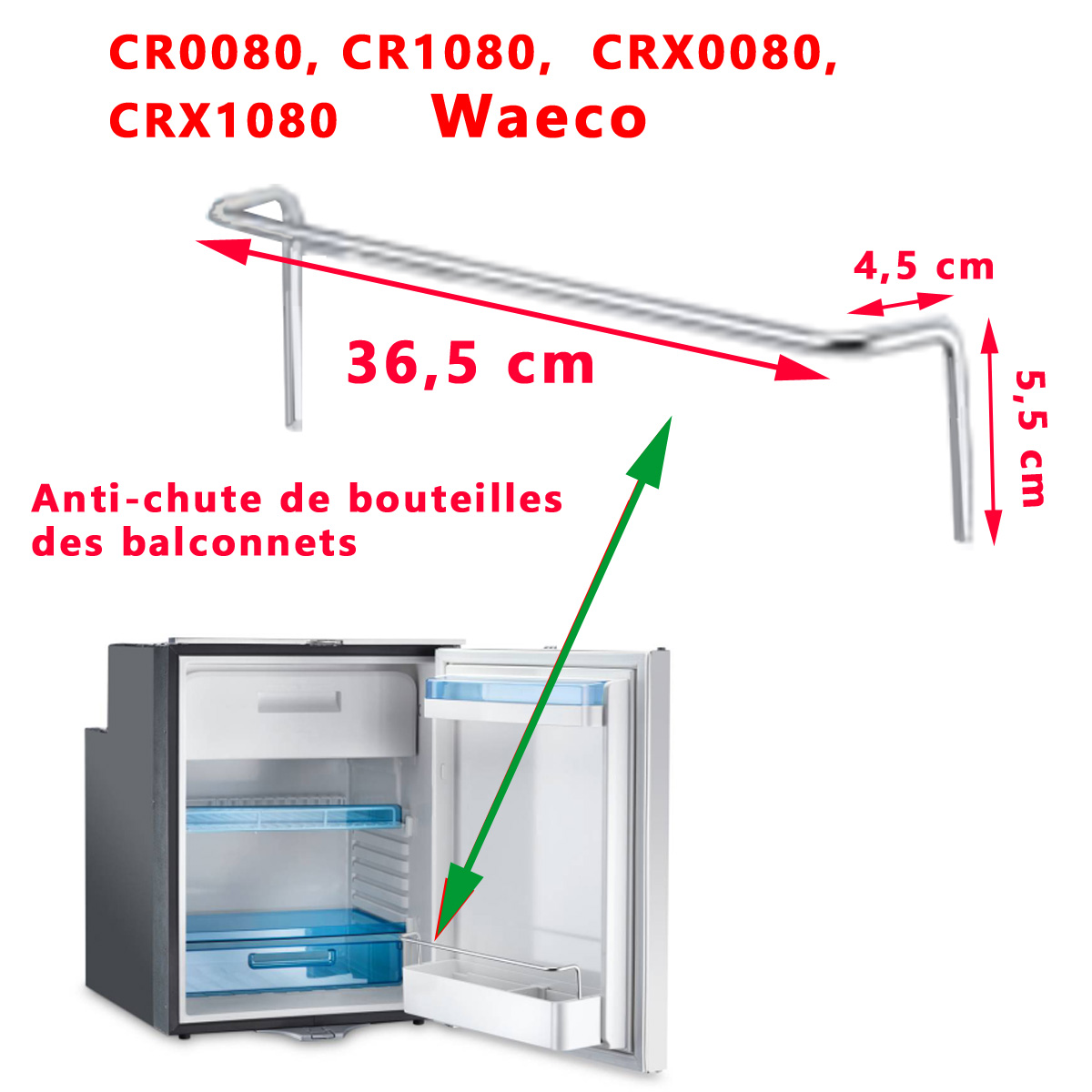 Pour vérifier si votre refrigerateur comporte bien cette tige, merci de nous contacter au 01.84.20.86.07 et munissez vous pour vérifier la compatibilité de votre numéro de produit de votre appareil Waeco ou Dometic (qui se trouve sur l’étiquette signalétique à l’interieur).