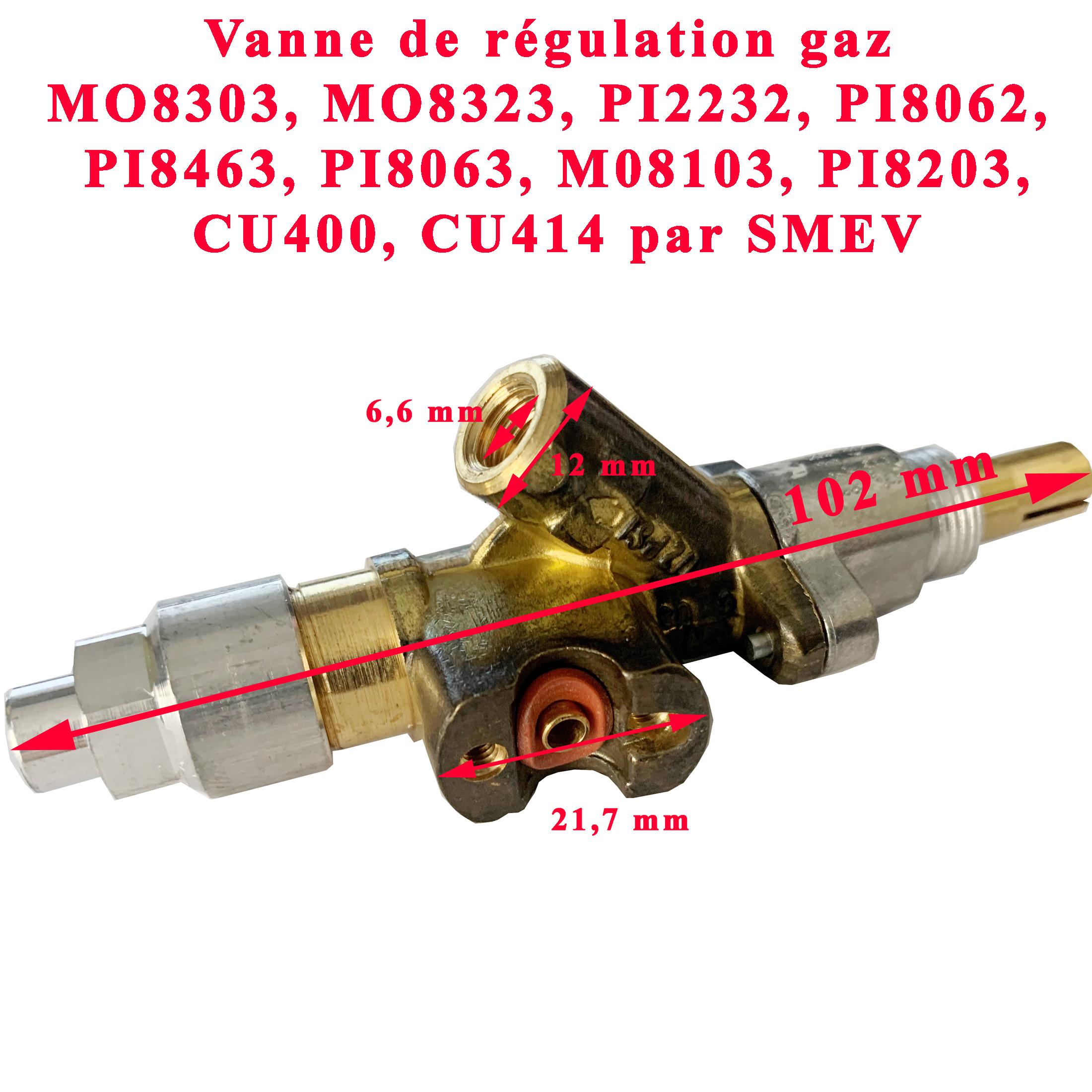 Vanne de régulation gaz ou robinet d’arret pour cuisiniere MO8303, MO8323, PI2232, PI8062, PI8463, PI8063, M08103, PI8203, CU400, CU414, PI8062M, PI2232M de SMEV dometic